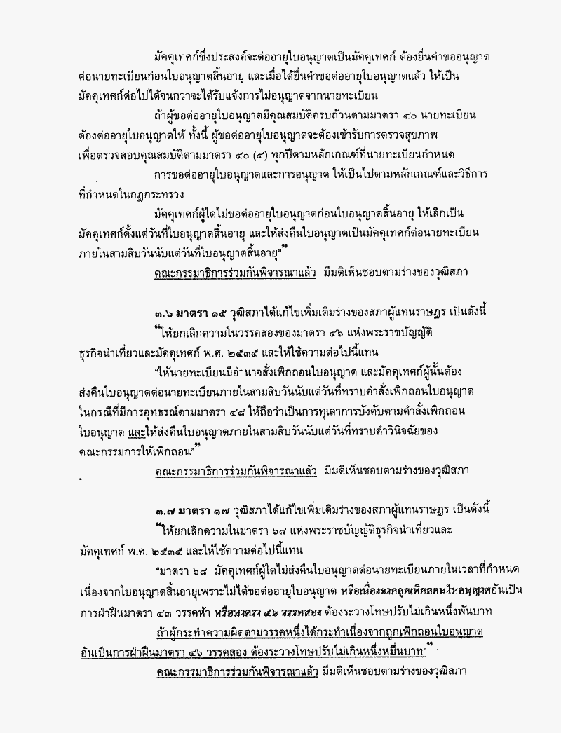 • ร่างพระราชบัญญัติธุรกิจนำเที่ยวและมัคคุเทศก์ (ฉบับที่ ..) พ.ศ. ....