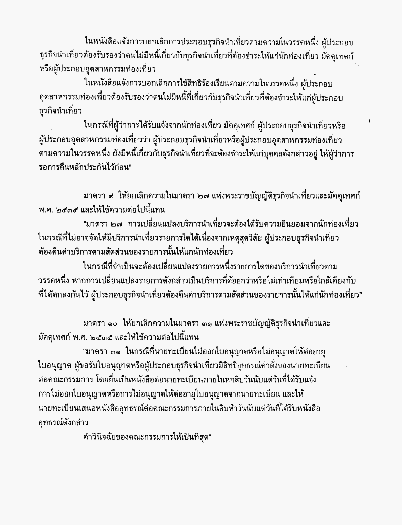 • ร่างพระราชบัญญัติธุรกิจนำเที่ยวและมัคคุเทศก์ (ฉบับที่ ..) พ.ศ. ....