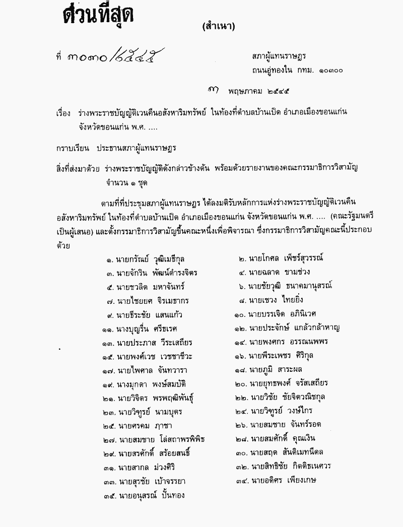 • ร่างพระราชบัญญัติดังกล่าวข้างต้น พร้อมด้วยรายงานของคณะกรรมาธิการวิสามัญจังหวัดขอนแก่น พ.ศ. ....