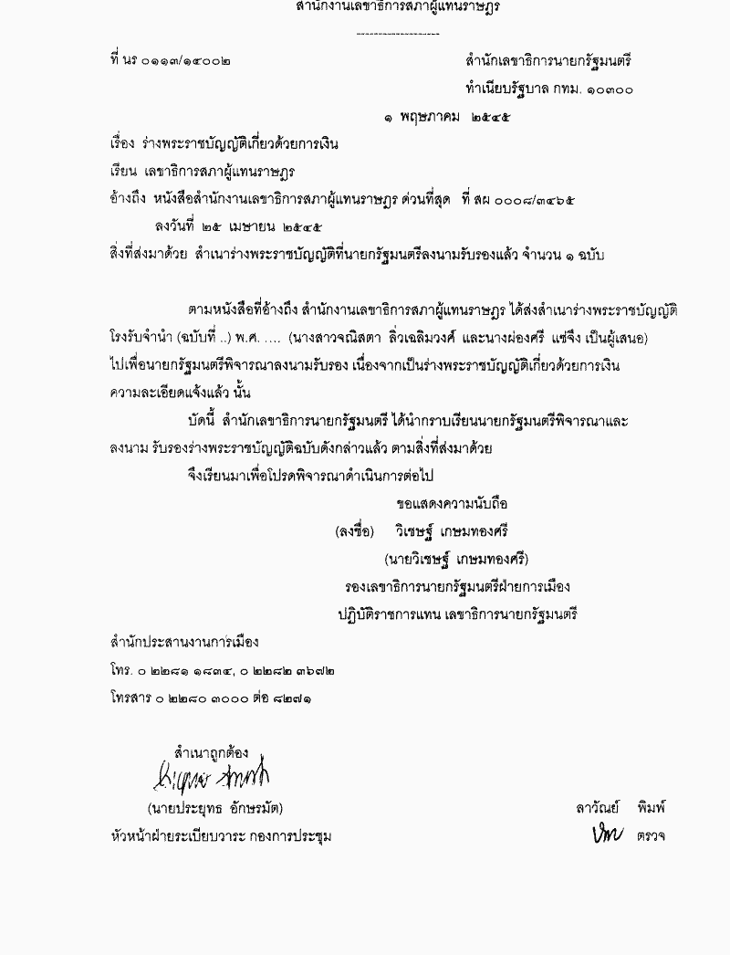 • ร่างพระราชบัญญัติเกี่ยวด้วยการเงิน