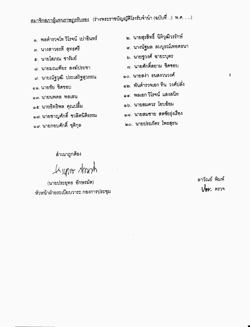 • ร่างพระราชบัญญัติโรงรับจำนำ (ฉบับที่ ..) พ.ศ. .... (นางสาวจนิสตา ลิ่วเฉลิมวงศ์ และนางผ่องศรี แซ่จึง เป็นผู้เสนอ)