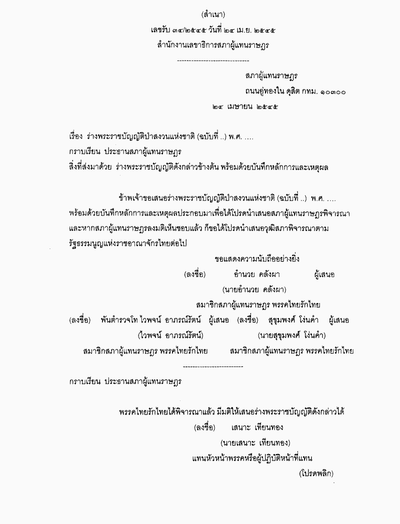 ชื่อเอกสาร :   ร่างพระราชบัญญัติป่าสงวนแห่งชาติ (ฉบับที่ ..) พ.ศ. ....