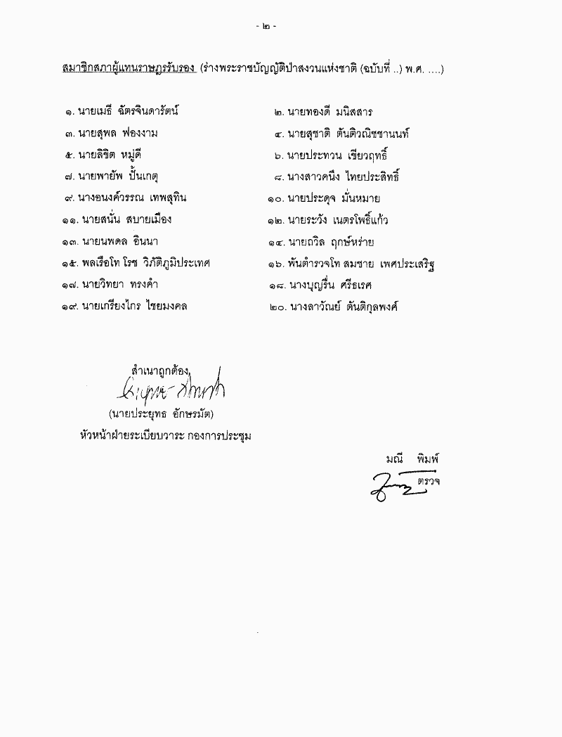 • ร่างพระราชบัญญัติป่าสงวนแห่งชาติ (ฉบับที่ ..) พ.ศ. ....