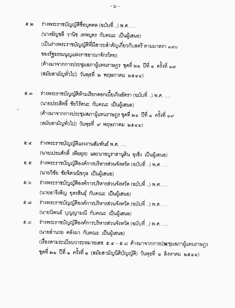 • ระเบียบวาระการประชุมสภาผู้แทนราษฎร ชุดที่ 21 ปีที่ 2 ครั้งที่ 23 (สมัยสามัญทั่วไป) วันพุธที่ 8 พฤษภาคม 2545