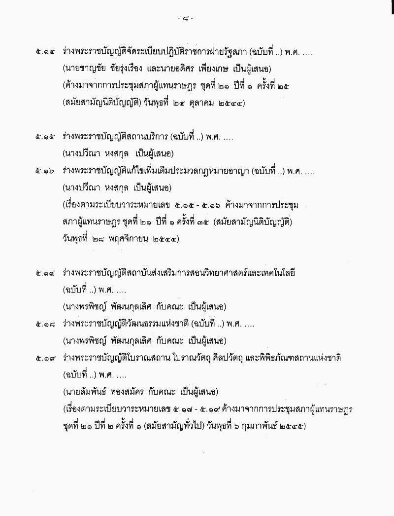 • ระเบียบวาระการประชุมสภาผู้แทนราษฎร ชุดที่ 21 ปีที่ 2 ครั้งที่ 23 (สมัยสามัญทั่วไป) วันพุธที่ 8 พฤษภาคม 2545