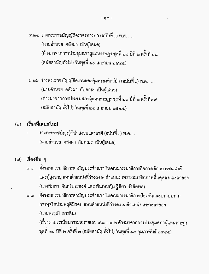 ระเบียบวาระการประชุมสภาผู้แทนราษฎร ชุดที่ 21 ปีที่ 2 ครั้งที่ 23 (สมัยสามัญทั่วไป) วันพุธที่ 8 พฤษภาคม 2545 |