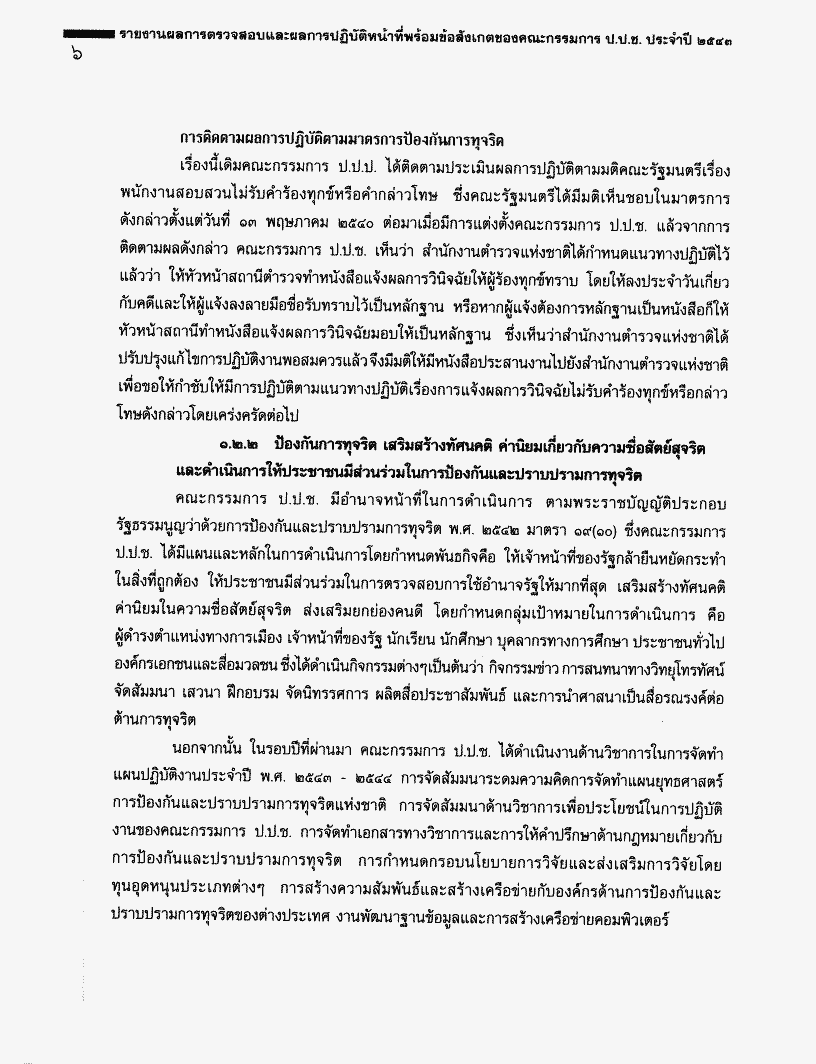 • รายงานผลการตรวจสอบและผลการปฏิบัติหน้าที่พร้อมข้อสังเกตของคณะกรรมการ ป.ป.ช. ประจำปี 2543