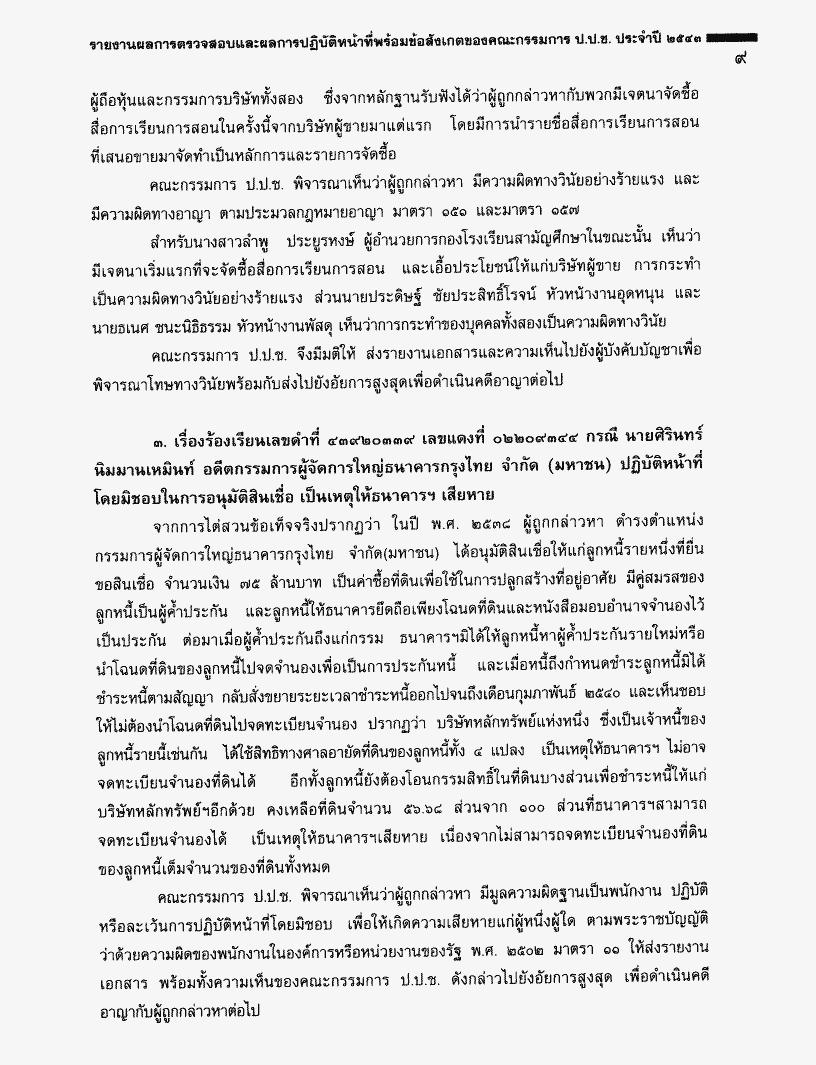 • รายงานผลการตรวจสอบและผลการปฏิบัติหน้าที่พร้อมข้อสังเกตของคณะกรรมการ ป.ป.ช. ประจำปี 2543