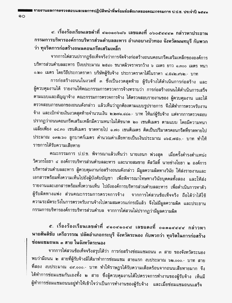• รายงานผลการตรวจสอบและผลการปฏิบัติหน้าที่พร้อมข้อสังเกตของคณะกรรมการ ป.ป.ช. ประจำปี 2543