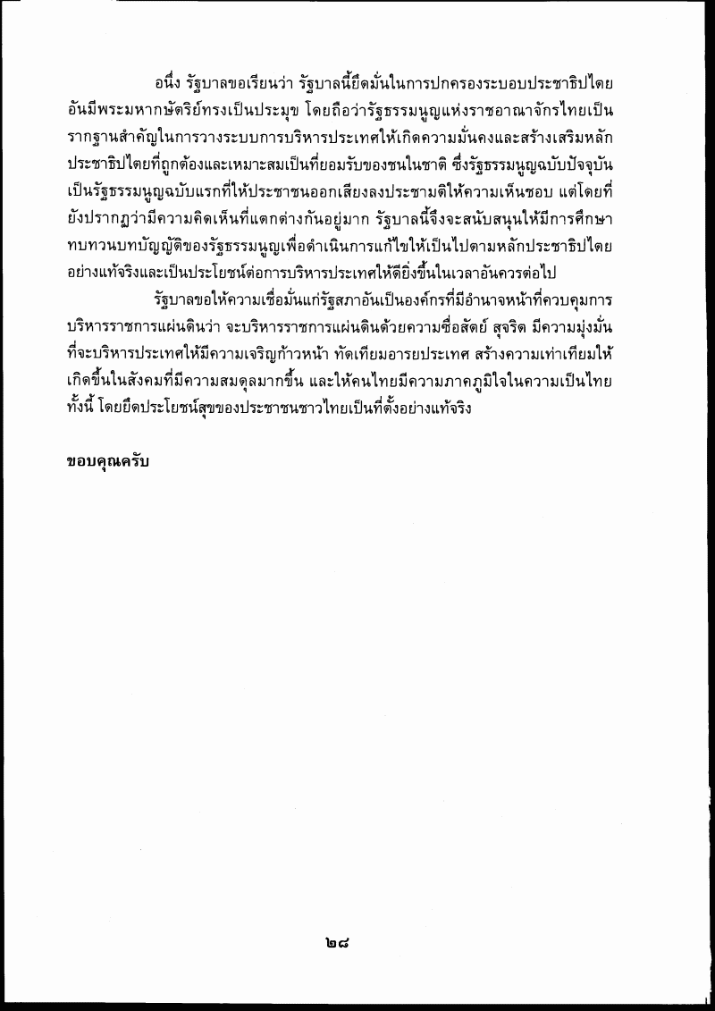คณะรัฐมนตรีแถลงนโยบายต่อรัฐสภา