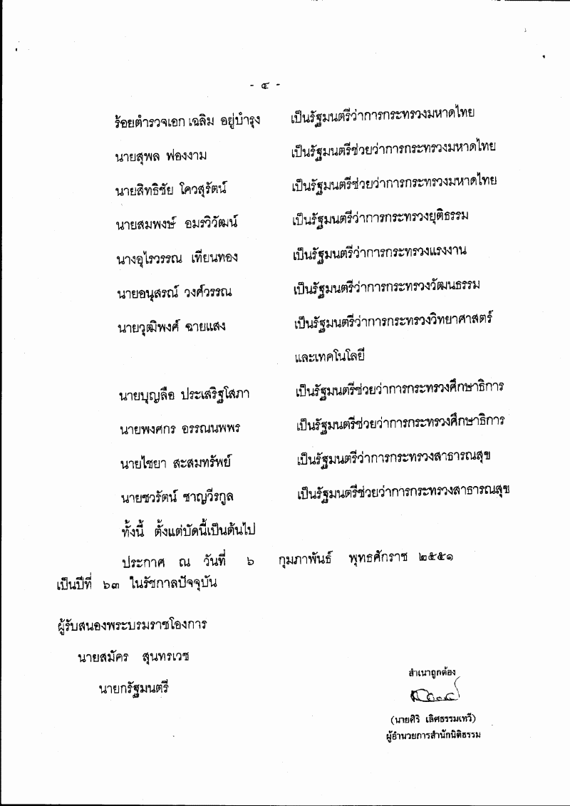ชื่อเอกสาร :   รับทราบพระบรมราชโองการแต่งตั้งรัฐมนตรี