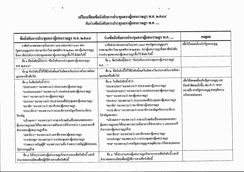 ตารางเปรียบเทียบ ข้อบังคับการประชุมสภาผู้แทนราษฎร พ.ศ. ๒๕๔๔ กับ ร่างข้อบังคับการประชุมสภาผู้แทนราษฎร พ.ศ. ....