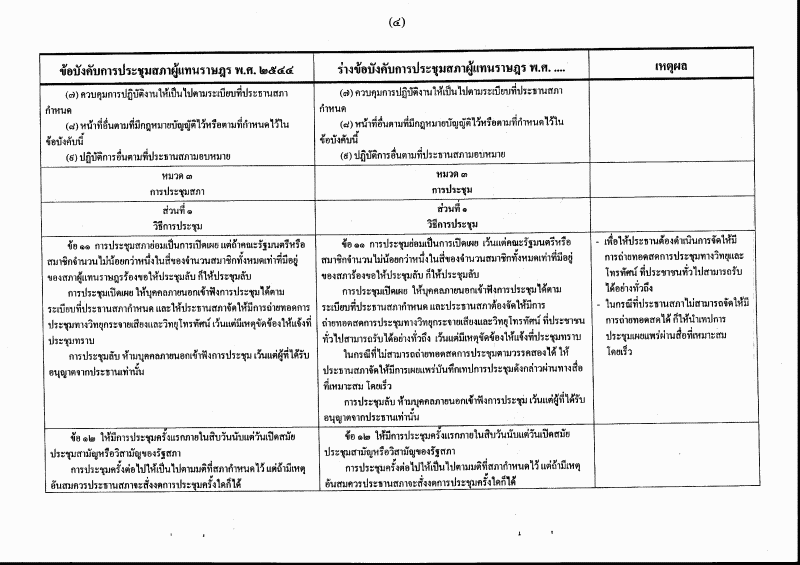 ตารางเปรียบเทียบ ข้อบังคับการประชุมสภาผู้แทนราษฎร พ.ศ. ๒๕๔๔ กับ ร่างข้อบังคับการประชุมสภาผู้แทนราษฎร พ.ศ. ....