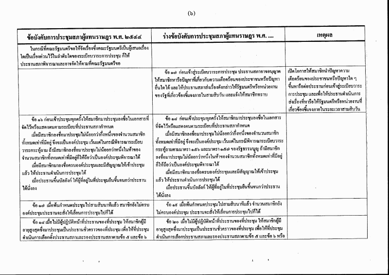 ตารางเปรียบเทียบ ข้อบังคับการประชุมสภาผู้แทนราษฎร พ.ศ. ๒๕๔๔ กับ ร่างข้อบังคับการประชุมสภาผู้แทนราษฎร พ.ศ. ....