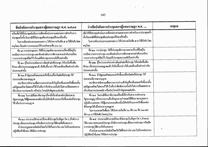 ตารางเปรียบเทียบ ข้อบังคับการประชุมสภาผู้แทนราษฎร พ.ศ. ๒๕๔๔ กับ ร่างข้อบังคับการประชุมสภาผู้แทนราษฎร พ.ศ. ....