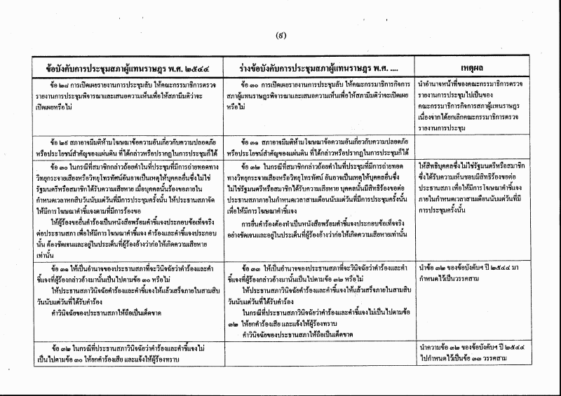 ตารางเปรียบเทียบ ข้อบังคับการประชุมสภาผู้แทนราษฎร พ.ศ. ๒๕๔๔ กับ ร่างข้อบังคับการประชุมสภาผู้แทนราษฎร พ.ศ. ....