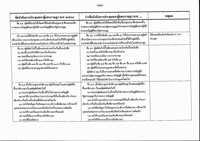 ตารางเปรียบเทียบ ข้อบังคับการประชุมสภาผู้แทนราษฎร พ.ศ. ๒๕๔๔ กับ ร่างข้อบังคับการประชุมสภาผู้แทนราษฎร พ.ศ. ....