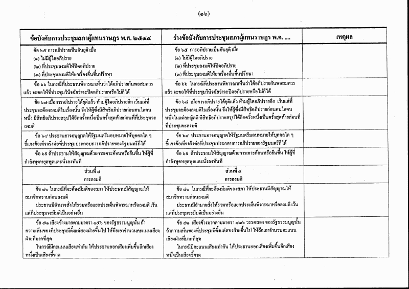 ตารางเปรียบเทียบ ข้อบังคับการประชุมสภาผู้แทนราษฎร พ.ศ. ๒๕๔๔ กับ ร่างข้อบังคับการประชุมสภาผู้แทนราษฎร พ.ศ. ....