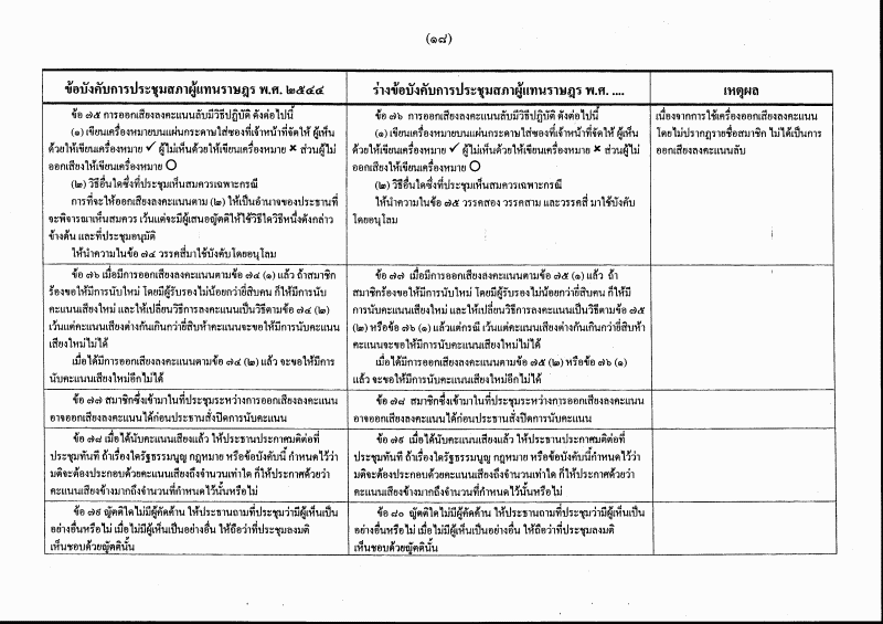 ตารางเปรียบเทียบ ข้อบังคับการประชุมสภาผู้แทนราษฎร พ.ศ. ๒๕๔๔ กับ ร่างข้อบังคับการประชุมสภาผู้แทนราษฎร พ.ศ. ....