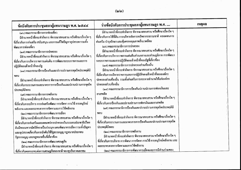 ตารางเปรียบเทียบ ข้อบังคับการประชุมสภาผู้แทนราษฎร พ.ศ. ๒๕๔๔ กับ ร่างข้อบังคับการประชุมสภาผู้แทนราษฎร พ.ศ. ....