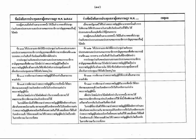 ตารางเปรียบเทียบ ข้อบังคับการประชุมสภาผู้แทนราษฎร พ.ศ. ๒๕๔๔ กับ ร่างข้อบังคับการประชุมสภาผู้แทนราษฎร พ.ศ. ....