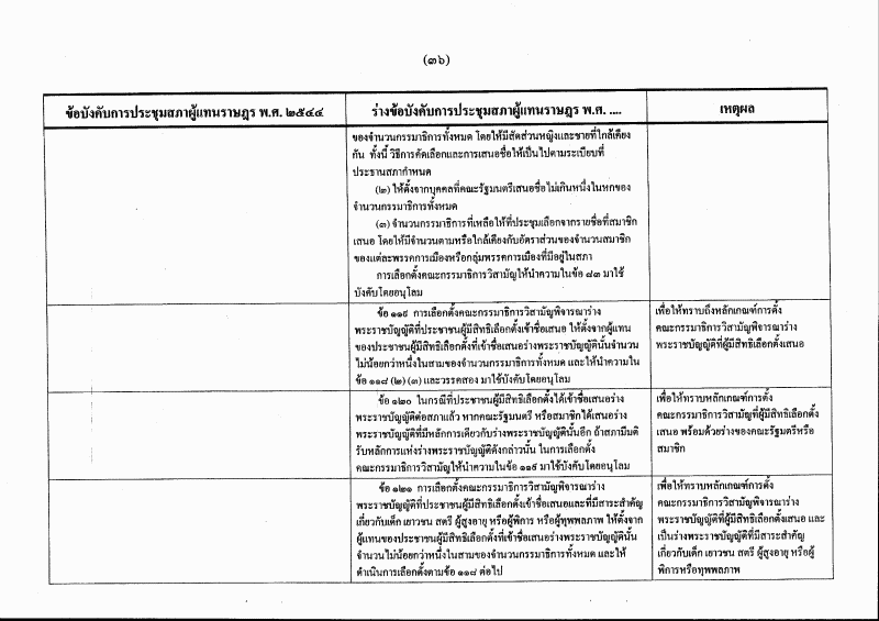 ตารางเปรียบเทียบ ข้อบังคับการประชุมสภาผู้แทนราษฎร พ.ศ. ๒๕๔๔ กับ ร่างข้อบังคับการประชุมสภาผู้แทนราษฎร พ.ศ. ....