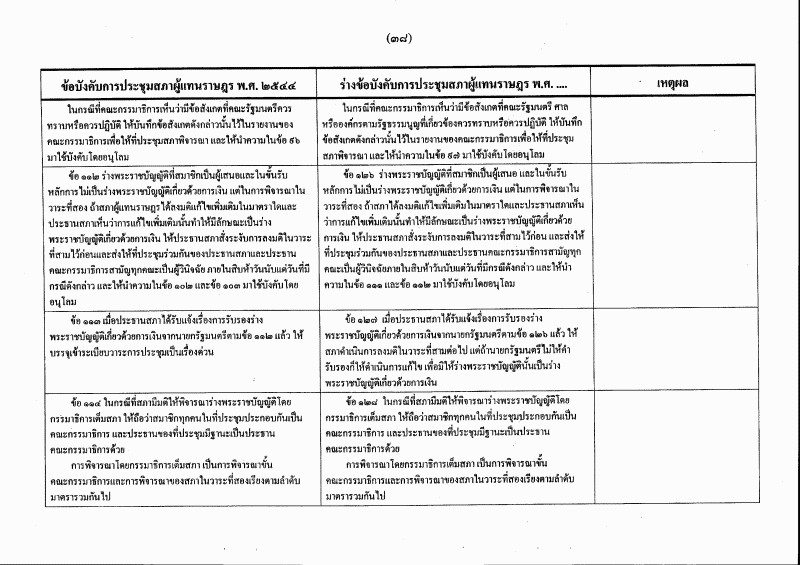 ตารางเปรียบเทียบ ข้อบังคับการประชุมสภาผู้แทนราษฎร พ.ศ. ๒๕๔๔ กับ ร่างข้อบังคับการประชุมสภาผู้แทนราษฎร พ.ศ. ....