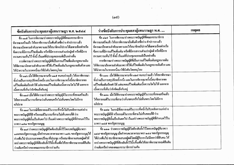 ตารางเปรียบเทียบ ข้อบังคับการประชุมสภาผู้แทนราษฎร พ.ศ. ๒๕๔๔ กับ ร่างข้อบังคับการประชุมสภาผู้แทนราษฎร พ.ศ. ....