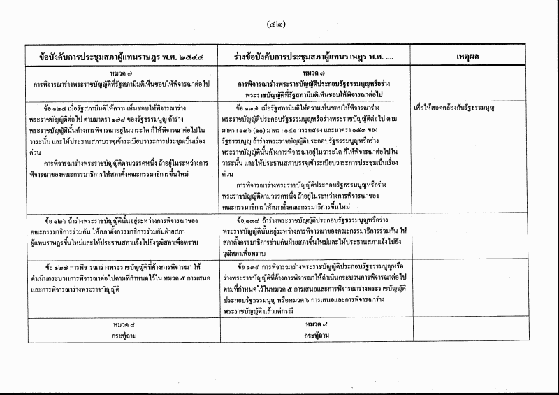 ตารางเปรียบเทียบ ข้อบังคับการประชุมสภาผู้แทนราษฎร พ.ศ. ๒๕๔๔ กับ ร่างข้อบังคับการประชุมสภาผู้แทนราษฎร พ.ศ. ....