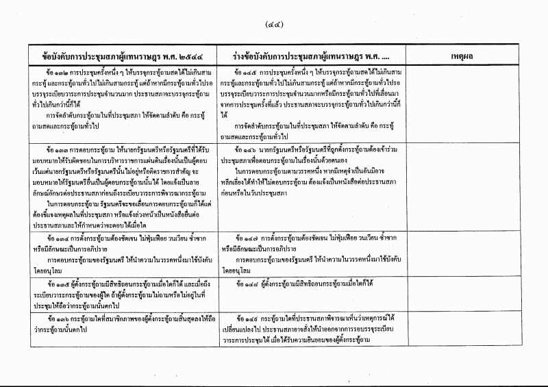 ตารางเปรียบเทียบ ข้อบังคับการประชุมสภาผู้แทนราษฎร พ.ศ. ๒๕๔๔ กับ ร่างข้อบังคับการประชุมสภาผู้แทนราษฎร พ.ศ. ....