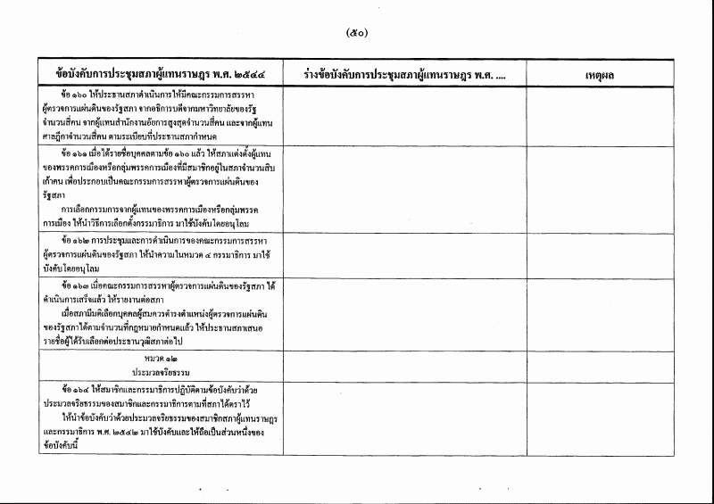 ตารางเปรียบเทียบ ข้อบังคับการประชุมสภาผู้แทนราษฎร พ.ศ. ๒๕๔๔ กับ ร่างข้อบังคับการประชุมสภาผู้แทนราษฎร พ.ศ. ....
