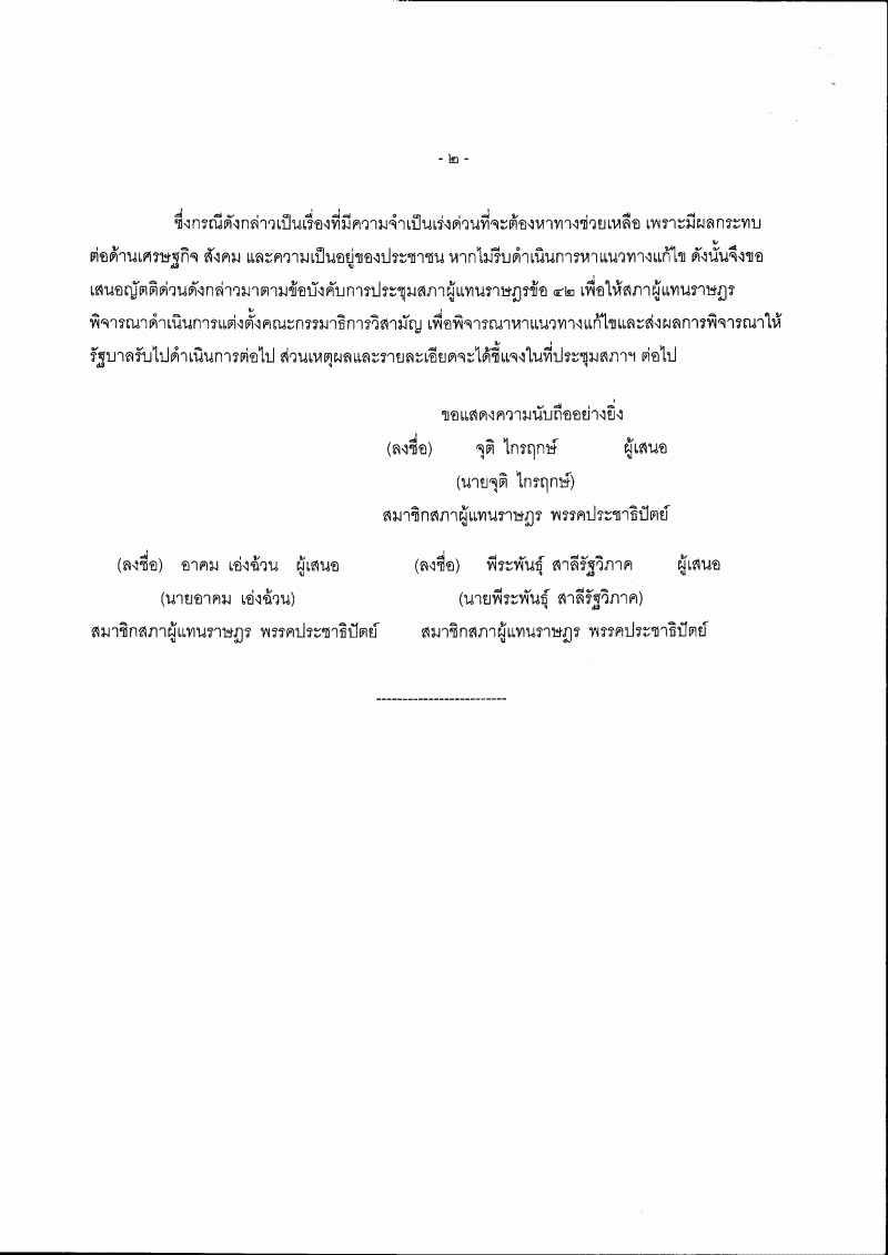 ญัตติเรื่อง ตั้งคณะกรรมาธิการวิสามัญพิจารณาศึกษาแนวทางแก้ปัญหาหนี้สินภาคประะชาชน (นายจุติ ไกรฤกษ์ กับคณะ เป็นผู้เสนอ) |
