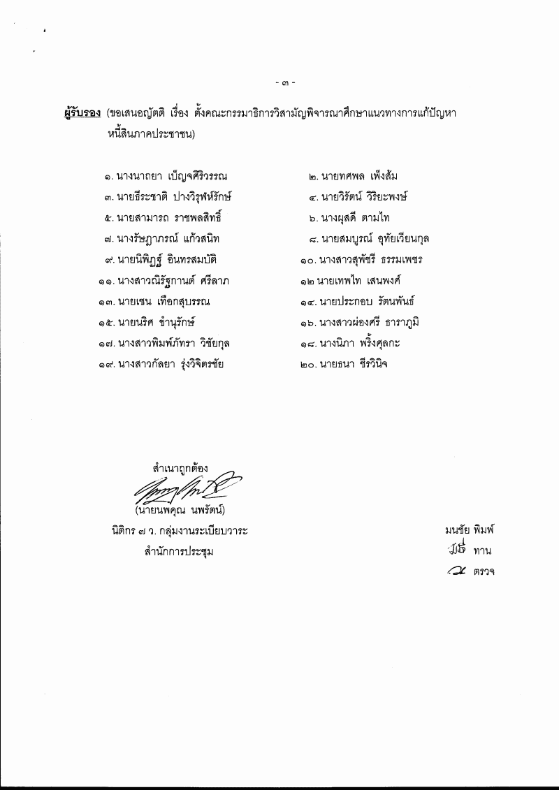 ชื่อเอกสาร :   ญัตติเรื่อง ตั้งคณะกรรมาธิการวิสามัญพิจารณาศึกษาแนวทางแก้ปัญหาหนี้สินภาคประะชาชน (นายจุติ ไกรฤกษ์ กับคณะ เป็นผู้เสนอ)