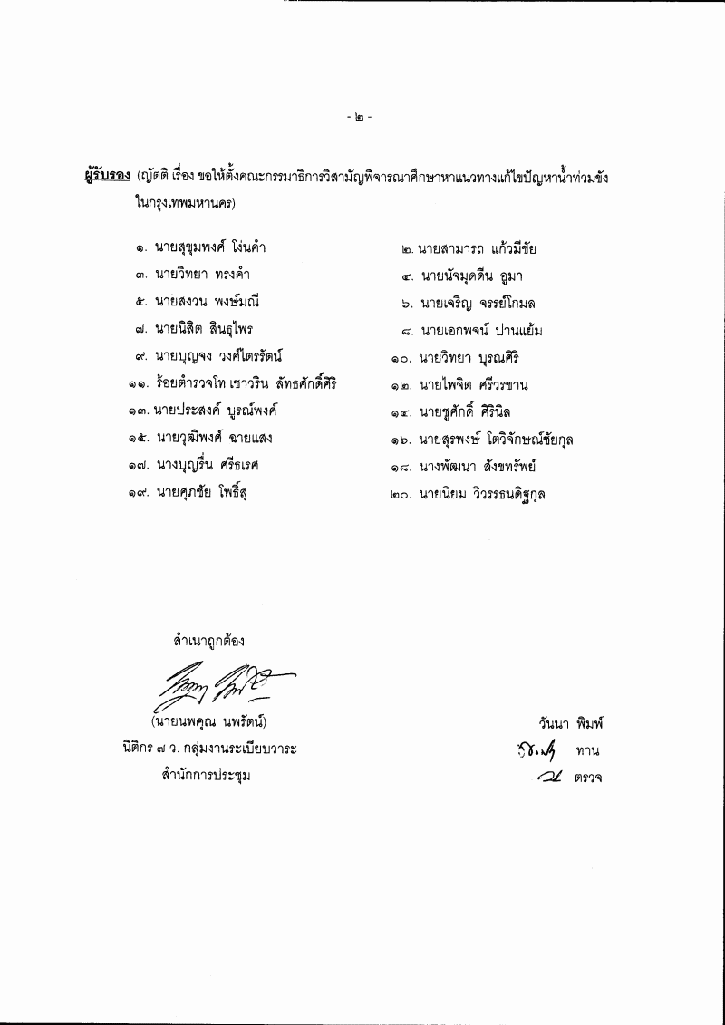 ญัตติ เรื่อง ขอให้ตั้งคณะกรรมาธิการวิสามัญพิจารณาศึกษาหาแนวทางแก้ไขปัญหาน้ำขังท่วมในกรุงเทพมหานคร (นายวิชาญ มีนชัยนันท์ กับครณะ เป็นผู้เสนอ) |