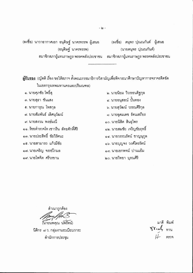 • ญัตติ เรื่อง ขอให้สภาฯ ตั้งคณะกรรมาธิการวิสามัญเพื่อพิจารณาศึกษาปัญหาการจราจรติดขัดในกรุงเทพมหานครและปริมณฑล (นายวิชาญ มีนชัยนันท์ กับคณะ เป็นผู้เสนอ)