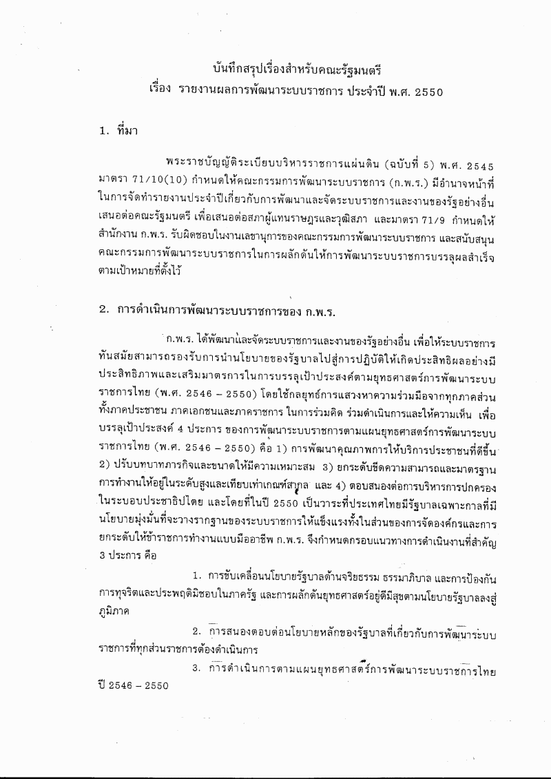 • รับทราบรายงานการพัฒนาระบบราชการไทย พ.ศ. ๒๕๕๐