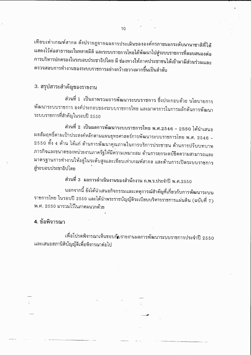 รับทราบรายงานการพัฒนาระบบราชการไทย พ.ศ. ๒๕๕๐