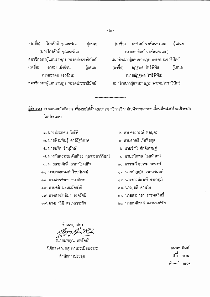 ญัตติด่วน เรื่อง ขอให้ตั้งคณะกรรมาธิการวิสามัญพิจารณารอยเลื่อนมีพลังที่ต้องเฝ้าระวังในประเทศ (นายเจะอามิง โตะตาหยง กับคณะ เป็นผู้เสนอ) |