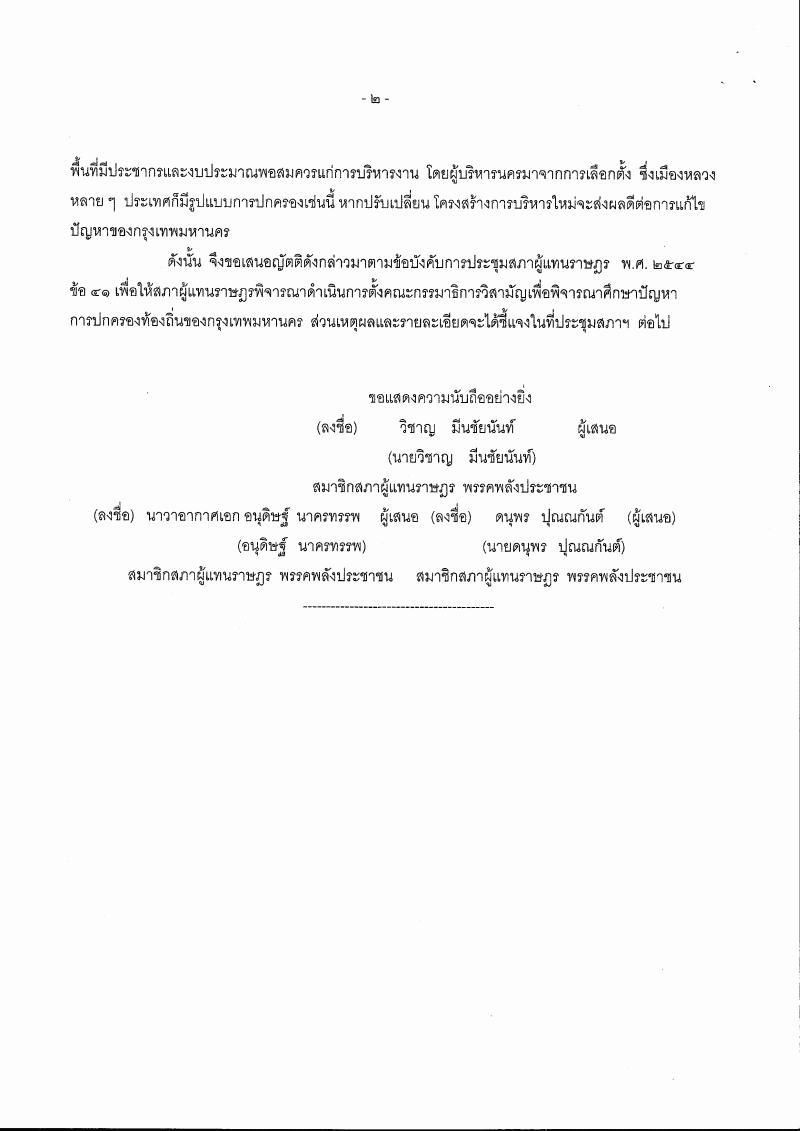 ชื่อเอกสาร :   ญัตติ เรื่อง ขอให้ตั้งคณะกรรมาธิการวิสามัญเพื่อพิจารณาศึกษาปัญหาการปกครองท้องถิ่นของกรุงเทพมหานคร (นายวิชาญ มีนชัยนันท์ กับคณะ เป็นผู้เสนอ)