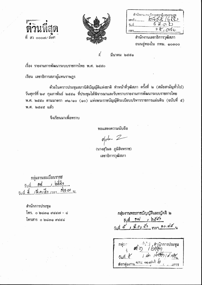 ระเบียบวาระการประชุมสภาผู้แทนราษฎร > ชุดที่ 23 > ปีที่ 1 > สมัยสามัญทั่วไป > ครั้งที่ 8 > (2) เรื่องที่ประธานจะแจ้งต่อที่ประชุม |