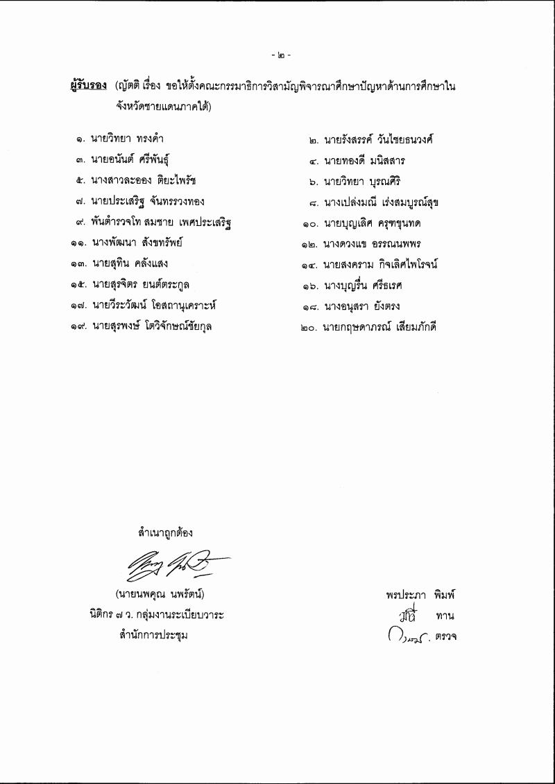 ชื่อเอกสาร :   ญัตติ เรื่อง ขอให้ตั้งคณะกรรมาธิการวิสามัญพิจารณาศึกษาปัญหาด้านการศึกษาในจังหวัดชายแดนภาคใต้ (นายอารีเพ็ญ อุตรสินธุ์ กับคณะ เป็นผู้เสนอ)