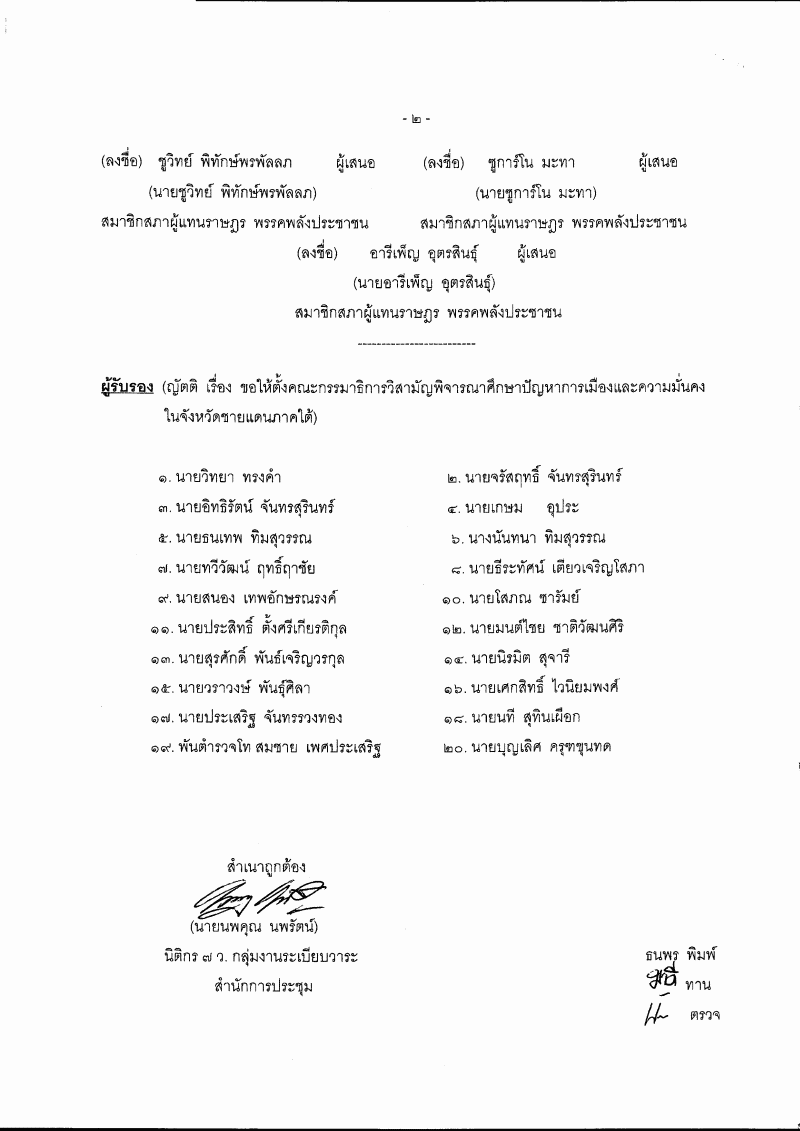 ญัตติ เรื่อง ขอให้ตั้งคณะกรรมาธิการวิสามัญพิจารณาศึกษาปัญหาการเมืองและความมั่นคงในจังหวัดชายแดนภาคใต้(นายนัจมุดดีน อูมา กับคณะ เป็นผู้เสนอ) |