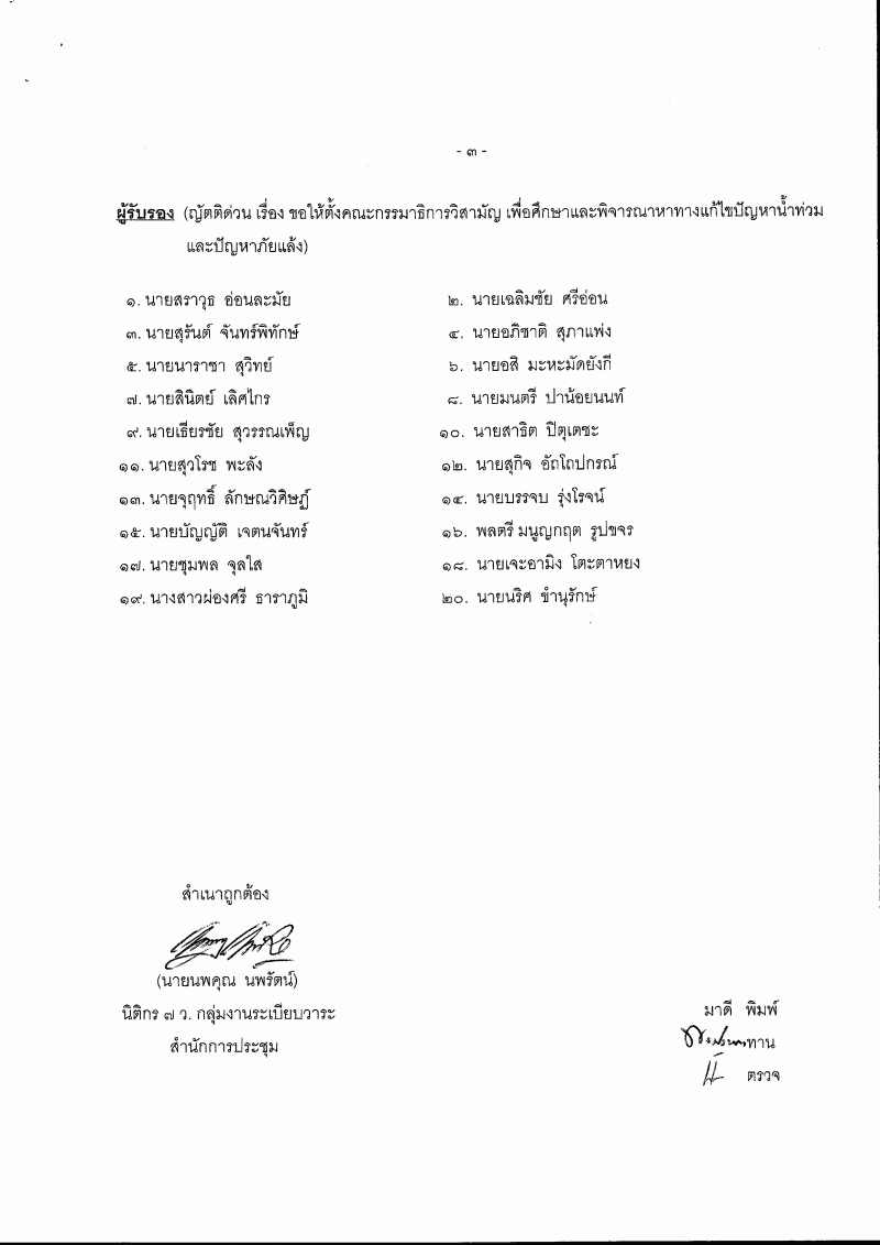 • ญัตติ เรื่อง ขอให้ตั้งคณะกรรมาธิการวิสามัญ เพื่อศึกษาและพิจาณาหาทางแก้ไขปัญหาน้ำท่วมและปัญหาภัยแล้ง (นายสุทัศน์ เงินหมื่น กับคณะ เป็นผู้เสนอ)