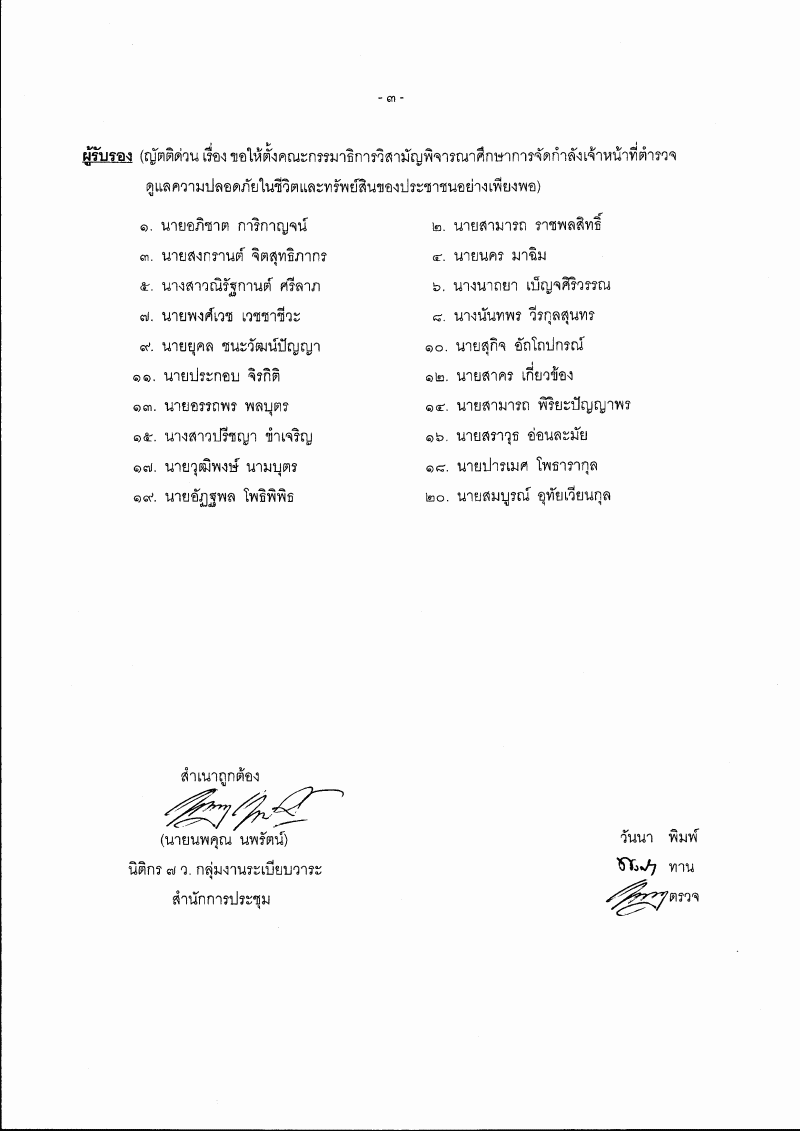 ชื่อเอกสาร :   ญัตติด่วน เรื่อง ขอให้ตั้งคณะกรรมาธิการวิสามัญพิจารณาศึกษาการจัดกำลังเจ้าหน้าที่ตำรวจดูแลความปลอดภัยในชีวิตและทรัพย์สินของประชาชนอย่างเพียงพอ (นายโกวิทย์ ธารณา กับคณะ เป็นผู้เสนอ)