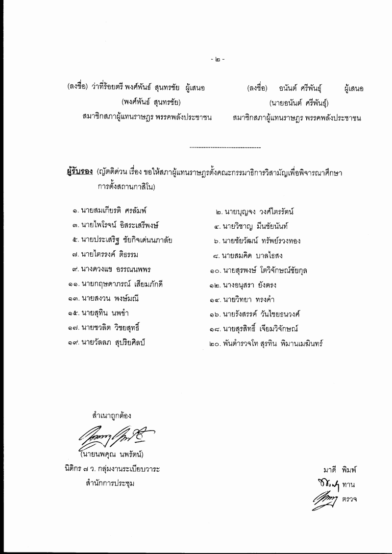 ชื่อเอกสาร :   ญัตติด่วน เรื่อง ขอให้สภาผู้แทนราษฎรตั้งคณะกรรมาธิการวิสามัญเพื่อพิจารณาศึกษาการตั้งสถานกาสิโน (ร้อยตำรวจโท เชาวริน ลัทธศักดิ์ศิริ กับคณะ เป็นผู้เสนอ)