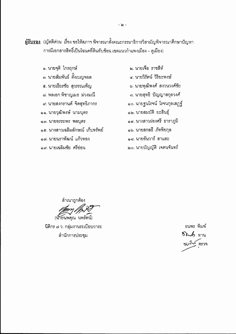 ญัตติ เรื่อง ขอให้สภาฯ พิจารณาตั้งคณะกรรมาธิการวิสามัญพิจารณาศึกษาปัญหาการมีเอกสารสิทธิ์เป็นโฉนดที่ดินทับซ้อน เขตแนวกำแพงเมือง - คูเมือง (นายวรงค์ เดชกิจวิกรม และนายนคร มาฉิม เป็นผู้เสนอ) |