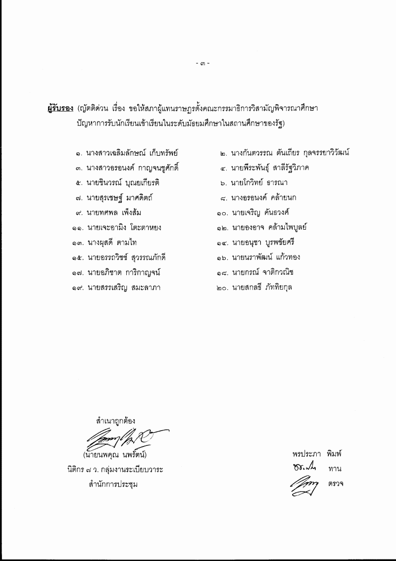 ญัตติ เรื่อง ขอให้สภาผู้แทนราษฎรตั้งคณะกรรมาธิการวิสามัญพิจารณาศึกษาปัญหาการรับนักเรียนเข้าเรียนในระดับมัธยมศึกษาในสถานศึกษาของรัฐ (นายสมัย เจริญช่าง กับคณะ เป็นผู้เสนอ) |