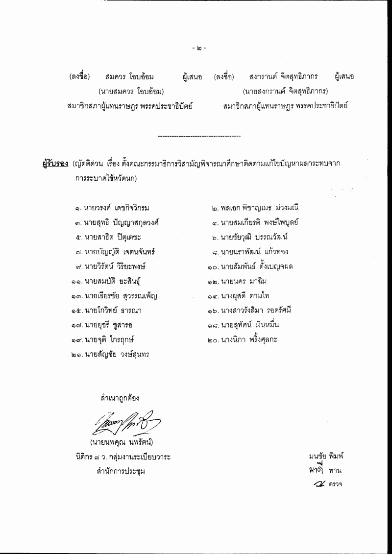 ญัตติ เรื่อง ตั้งคณะกรรมาธิการวิสามัญพิจารณาศึกษาติดตามแก้ไขปัญหาผลกระทบจากการระบาดไข้หวัดนก (นางมาลินี สุขเวชชวรกิจ กับคณะ เป็นผู้เสนอ) |