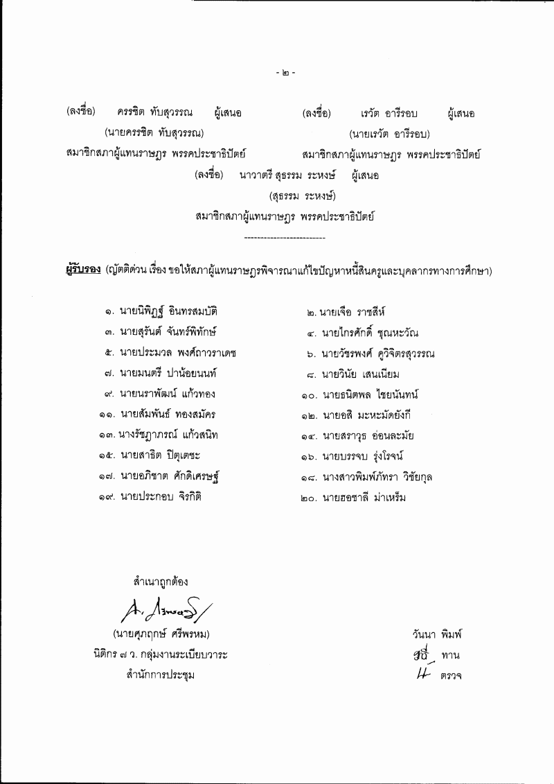 • (๕) ญัตติ เรื่อง ขอให้สภาผู้แทนราษฎรพิจารณาแก้ไขปัญหาหนี้สินครูและบุคลากรทางการศึกษา (นายกัมพล สุภาแพ่ง กับคณะ เป็นผู้เสนอ)