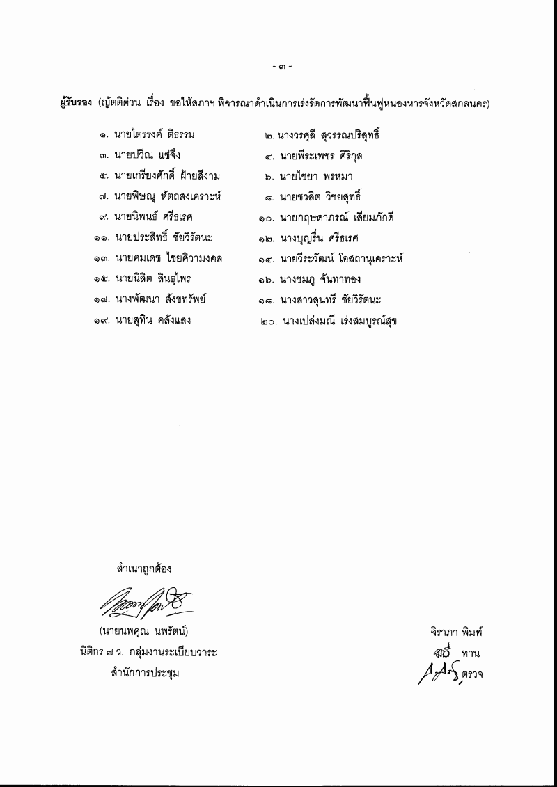 • (๘) ญัตติ เรื่อง ขอให้สภาฯ พิจารณาดำเนินการเร่งรัดการพัฒนาฟื้นฟูหนองหาร จังหวัดสกลนคร (นายนิยม เวชกามา กับคณะ เป็นผู้เสนอ)